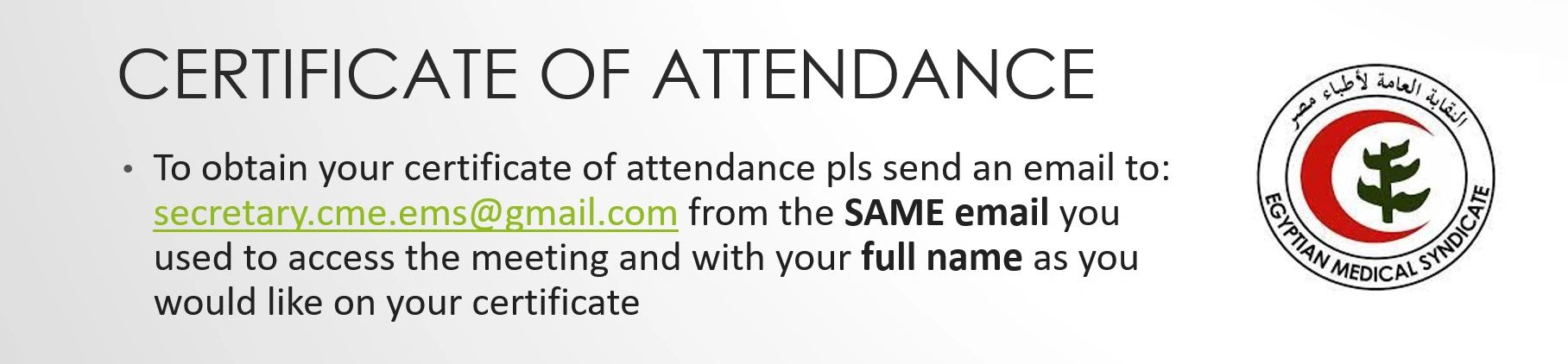 This CME Program is organized by the independent medical committe of German Egyptian Social & Scientific Relationships e.V. and recognized by the egyptian medical syndicate (https://www.ems.org.eg)